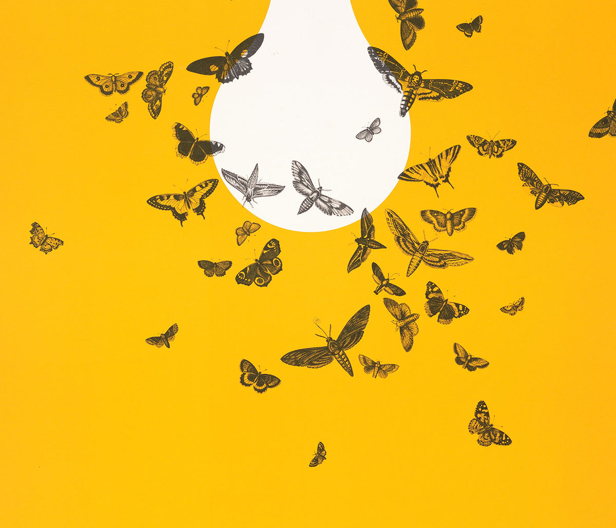 MORYARTY · 2022 · Matisse inspired portrait poster with blue background, white face, and yellow earring